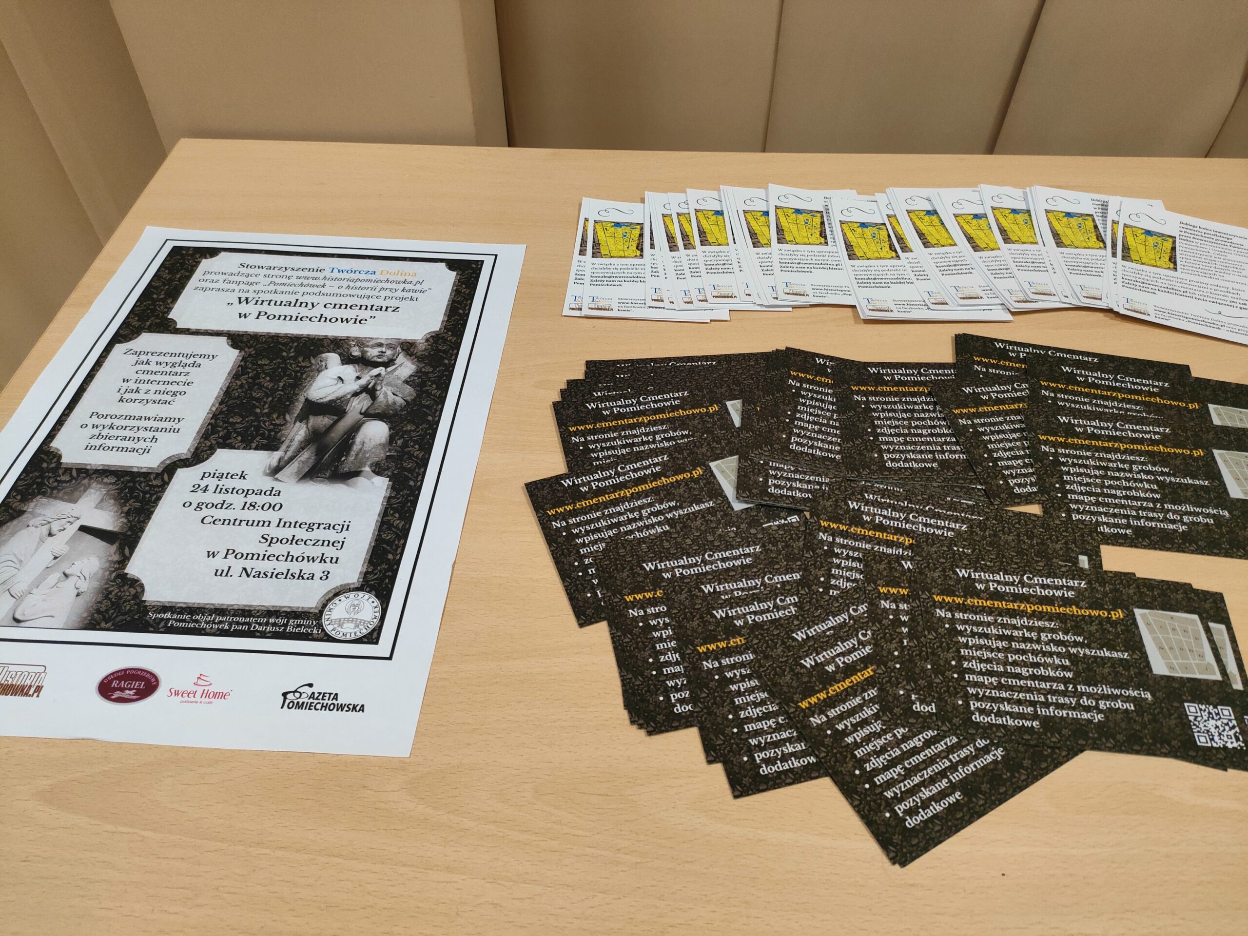 24 listopada 2023 roku o godzinie 18.00 w Centrum Integracji Społecznej odbyło się spotkanie podsumowujące projekt „Wirtualny cmentarz w Pomiechowie” Spotkanie rozpoczęło się od pokazu kilkunastominutowego filmu przygotowanego przez ekipę Twórczej Doliny działającej jako Twórcza TV. W filmie przedstawili się wszyscy wolontariusze pracujący przy projekcie oraz została zaprezentowana strona www.cmentarzpomiechowo.pl, która jest efektem projektu. Po projekcji nastąpiło powitanie gości i zgromadzonych. Potem nastąpiła bardzo ważna część spotkania, Prezes Twórczej Doliny pan Andrzej Lenart oraz wójt gminy Pomiechówek pan Dariusz Bielecki, podziękowali wolontariuszom za pracę na rzecz lokalnej społeczności jaką było przeprowadzenie inwentaryzacji cmentarza i utworzenie strony. Wolontariusze otrzymali podziękowania w formie pisemnej oraz upominki od Stowarzyszenia oraz o wójta gminy Pomiechówek. Potem przyszedł czas na zaprezentowanie strony cmentarza w Pomiechowie. Odbyła się prezentacja, podczas której 3 osoby: Danuta Bolek, Andrzej Lenart i Piotr Bolek, zajmujące się projektem referowały projekt. Najwięcej do powiedzenia miał Piotr Bolek, który stworzył podstawy projektu i stronę cmentarza. Opowiedział też o działaniu strony. Na koniec uczestnicy spotkania zostali zaproszeni do rozmów kuluarowych, którym nie było końca. Przy kawie, herbacie i ciastkach rozmawiano o planach rozbudowy strony o nowe funkcje i o planach na przyszłość Twórczej Doliny. Wydarzenie wspomogli: wójt gminy Pomiechówek pan Dariusz Bielecki, który objął swoim patronatem wydarzenie i przekazał upominki dla wolontariuszy, pan Adam Ragiel (Usługi Pogrzebowe Ragiel), który sfinansował upominki dla wolontariuszy i wydruk podziękowań oraz państwo Bartosiewiczowie (Sweet Home), którzy przekazali ciastka na spotkanie. Część ciastek była opatrzona logiem Twórczej Doliny. Dzięki uprzejmości gminy Pomiechówek i PPW WKRA sp. z o. o. mogliśmy korzystać z sali Centrum Integracji Społecznej i umieszczonego tam sprzętu. Poniżej znajduje się fotorelacja z wydarzenia.
